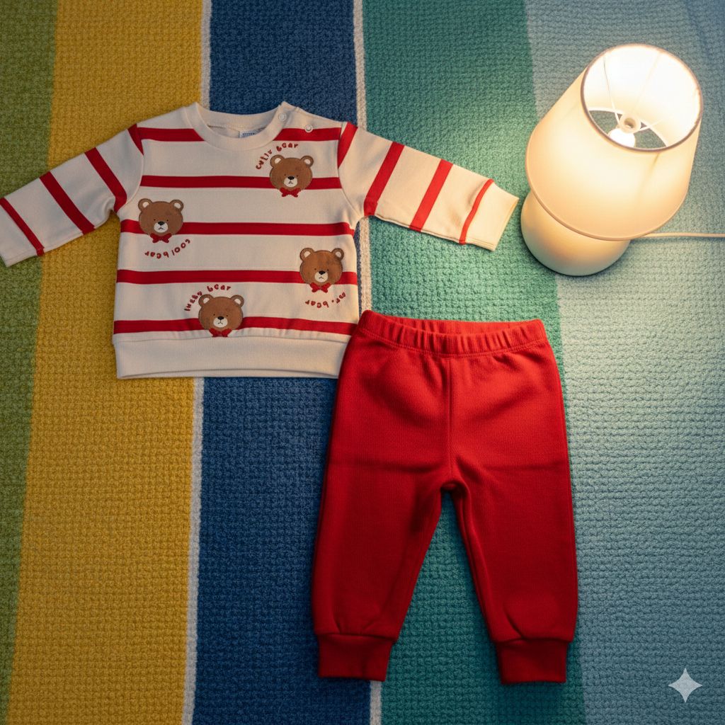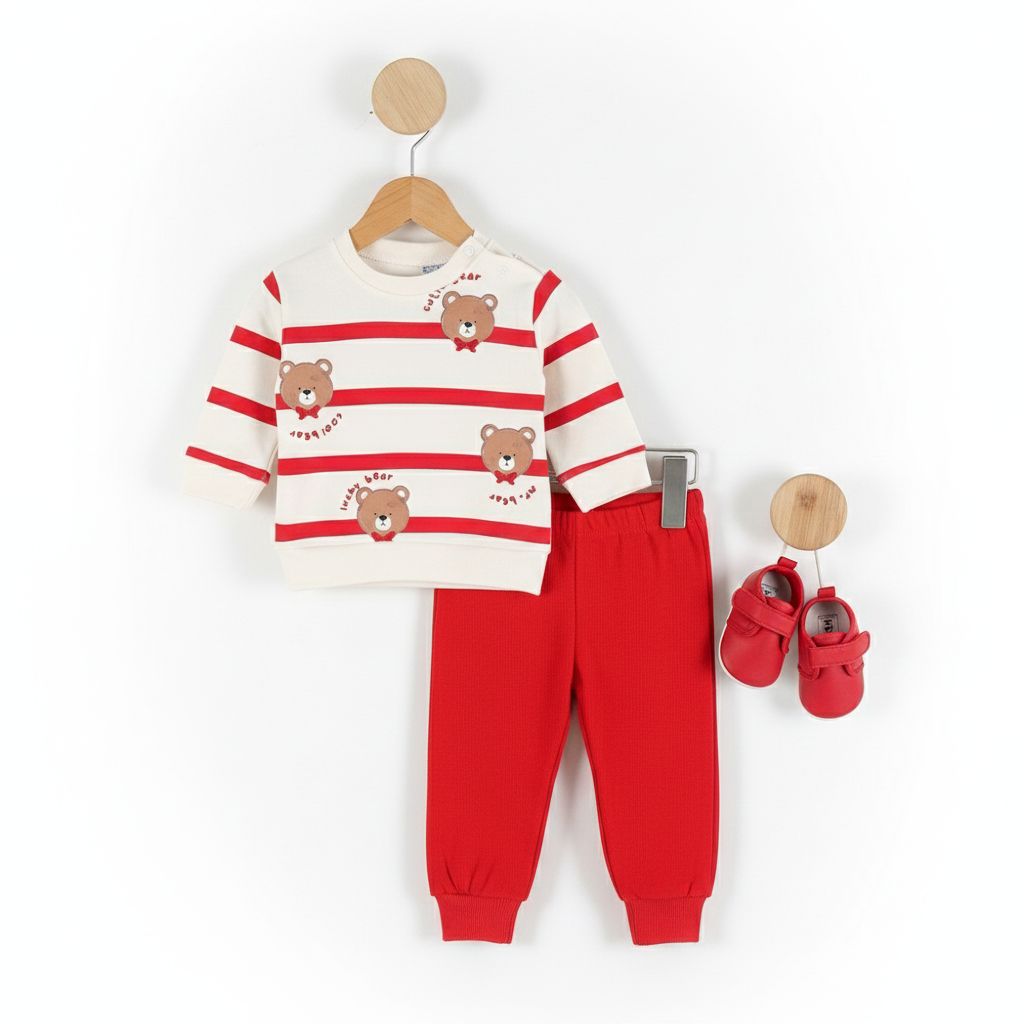 KIRMIZI ÇİZGİLİ AYICIKLI 2'Lİ TAKIM