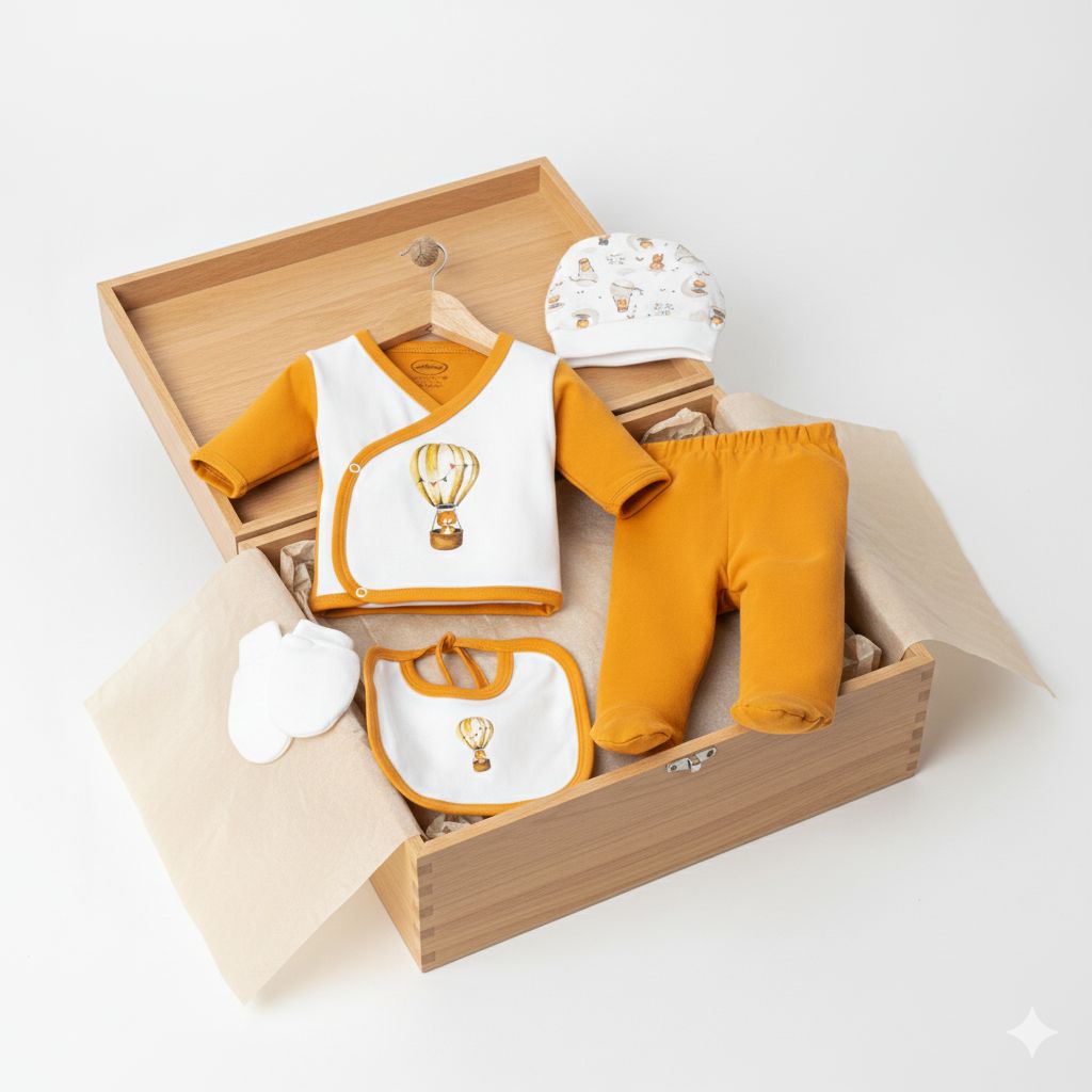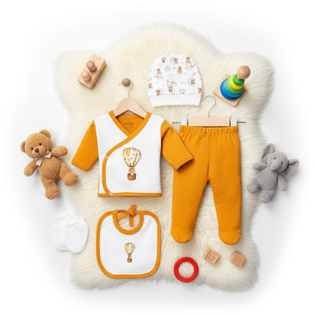 TURUNCU BEYAZ BALONLU 5'Lİ HASTANE ÇIKIŞ SETİ